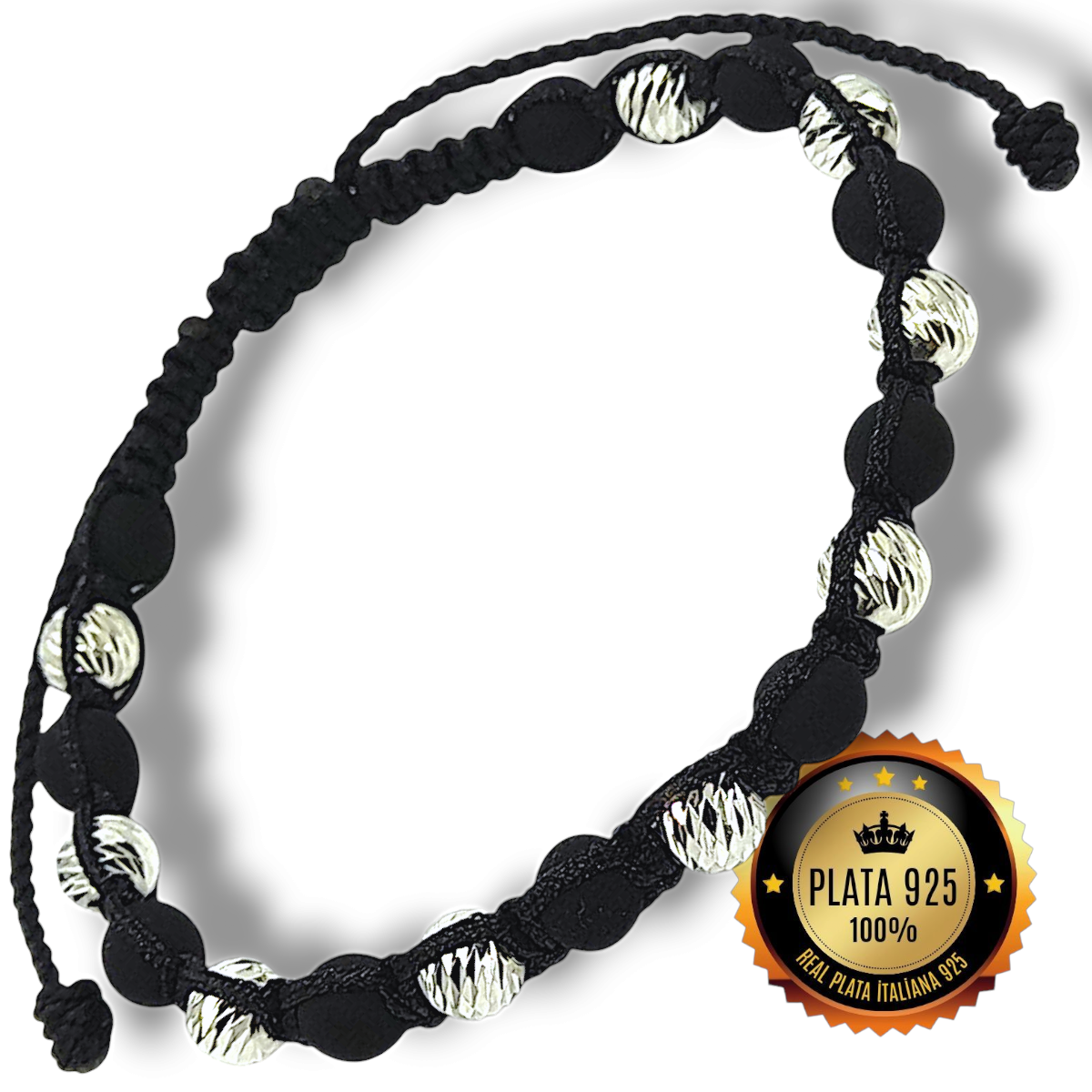 Pulsera con Balines diamantados en plata italiana 925 de alta calidad, (NO ES BAÑO DE PLATA).